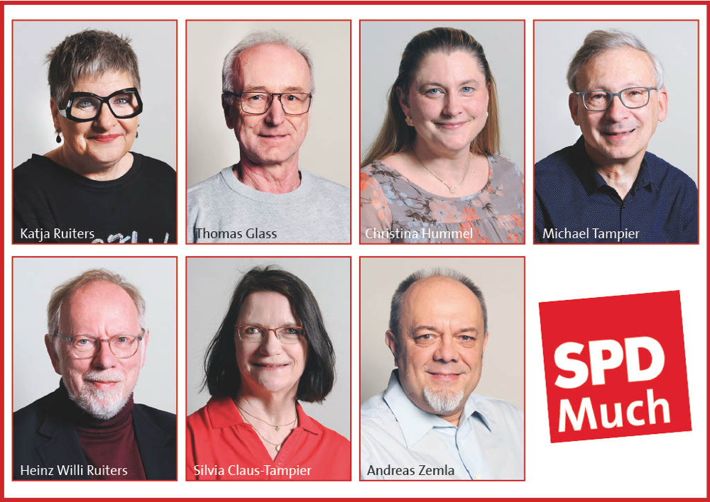 Die SPD-Fraktion im neu gewählten Gemeinderat in Much hat erneut unsere Kreistagsabgeordnete Katja Ruiters zur Fraktionsvorsitzenden gewählt. Sie hat diese Aufgabe bereits seit 2020 wahrgenommen. Stellvertretender Fraktionsvorsitzender ist Thomas Glass, der als unser Bürgermeisterkandidat einen beachtlichen Stimmenanteil erreicht hat. Die Kasse übernimmt künftig Andreas Zemla. Zur siebenköpfigen Fraktion in Much gehören außerdem Silvia Claus-Tampier, Christina Hummel, Heinz Willi Ruiters und Michael Tampier.